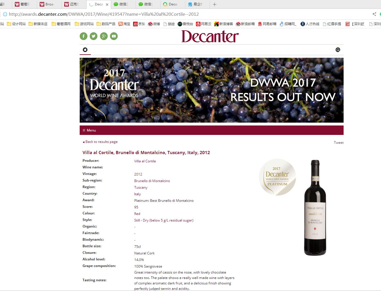 最後,獲獎葡萄酒名單會(huì)被刊登在《醇鑒》雜(zá)志(zhì)及其網站(zhàn)(decanter.com)¶上(shàng)。