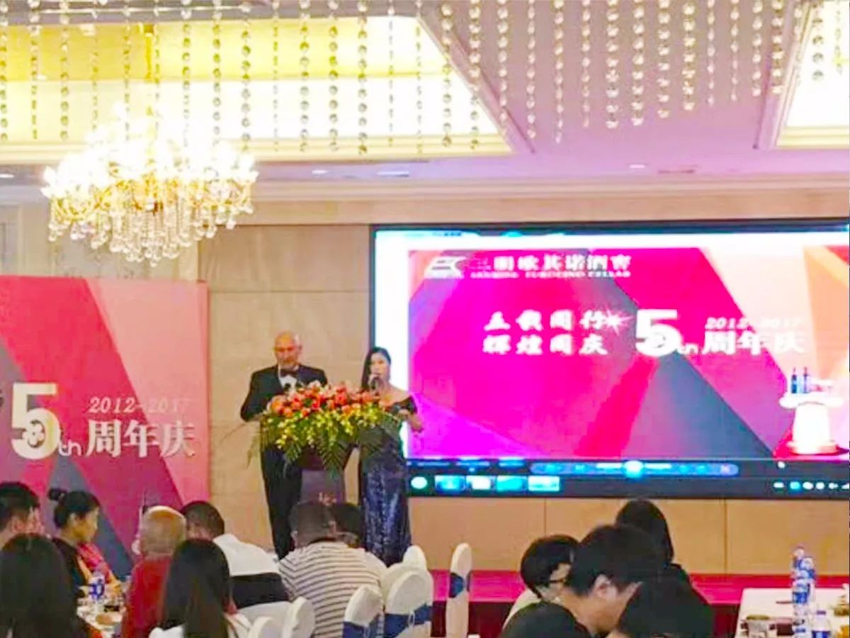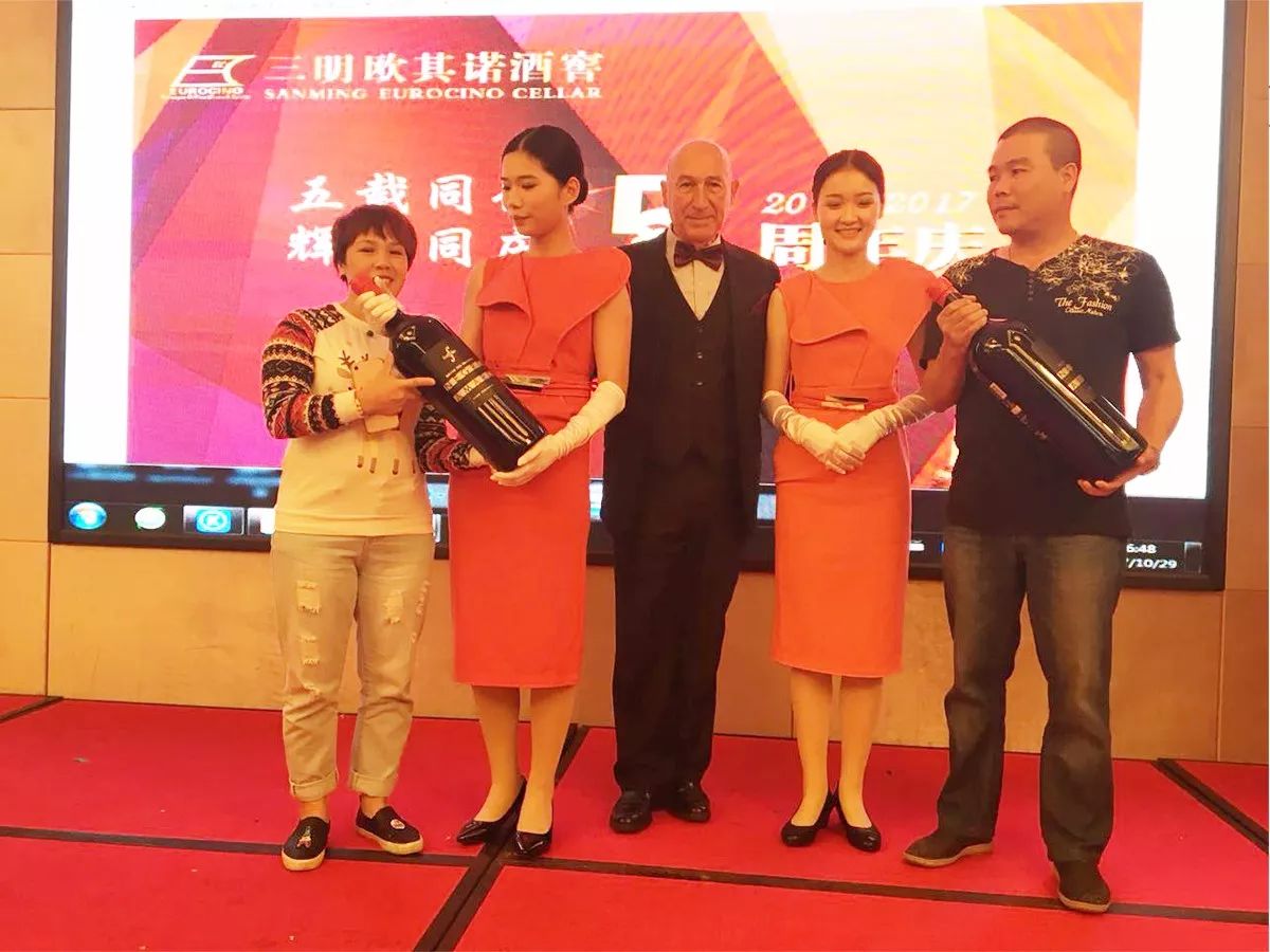 10月(yuè)29日(rì),三明(míng)歐其諾酒窖新老(lǎo)客戶歡聚一(yī)堂,舉辦了(le)主題為(wèi)“五載同行(xíng)&φamp;middot;輝煌同慶”的(de)5周年(nián)慶典,國(guó)際名 莊弗羅森(sēn)諾莊主“巴爺”不(bù)遠(yuǎn)萬裡(lǐ)前來(lái)祝賀。