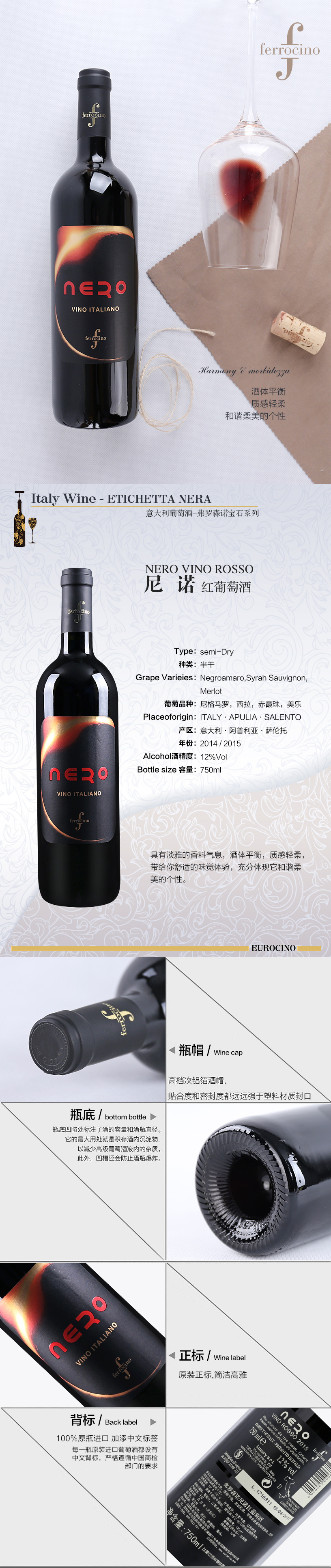 葡萄品種:尼格馬羅Negroamaro,西(xī)拉Syrah,赤霞珠 Cabernet Sauvignon,美(měi)×樂(yuè)Merlot