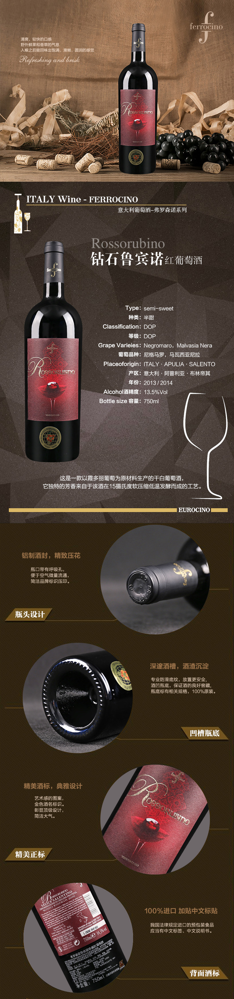 葡萄品種:尼格馬羅Negroamaro 馬瓦西(xī)亞尼拉Malvasia Nera