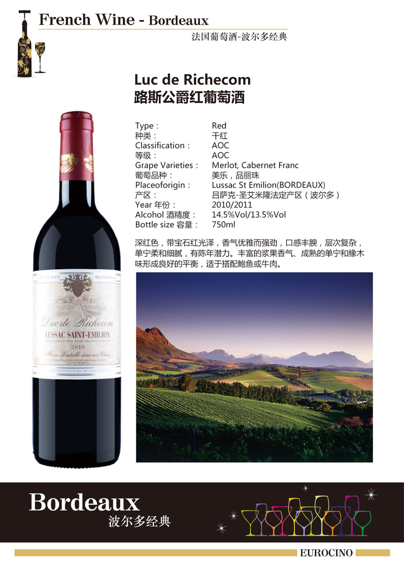 産區(qū):呂薩克-聖艾米利永(Lussac St Emilion)   等級:AOC