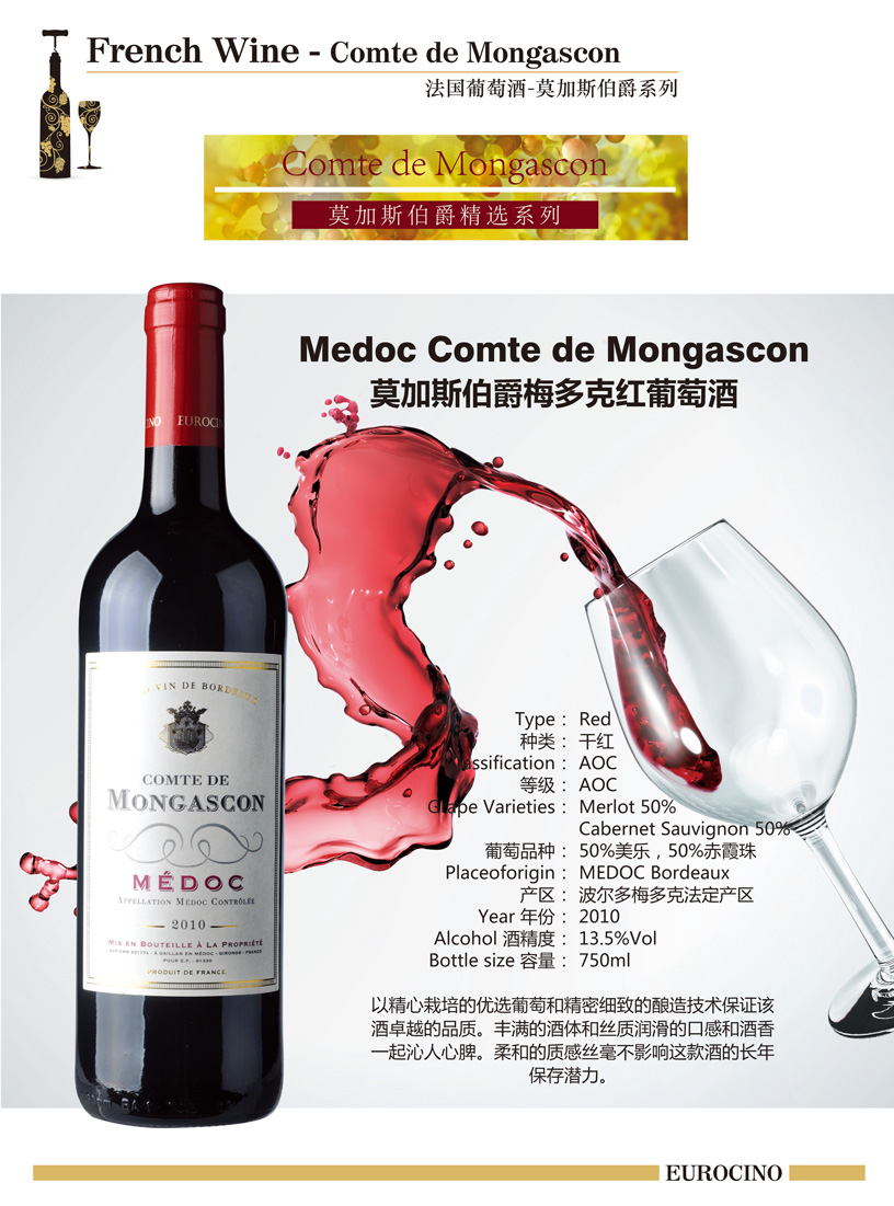 産區(qū):波爾多(duō)(BORDEAUX)梅多(duō)克(MEDOC)     &n±bsp;等級:AOC