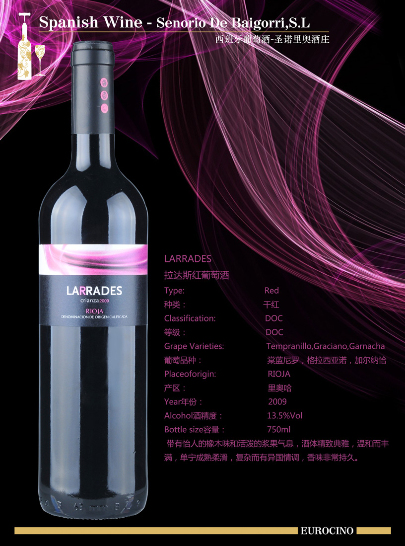 葡萄品種:70% Tempranillo 棠藍(lán)尼羅 20% graciano格拉西(xī)亞諾 10 garnacha. 加爾納恰