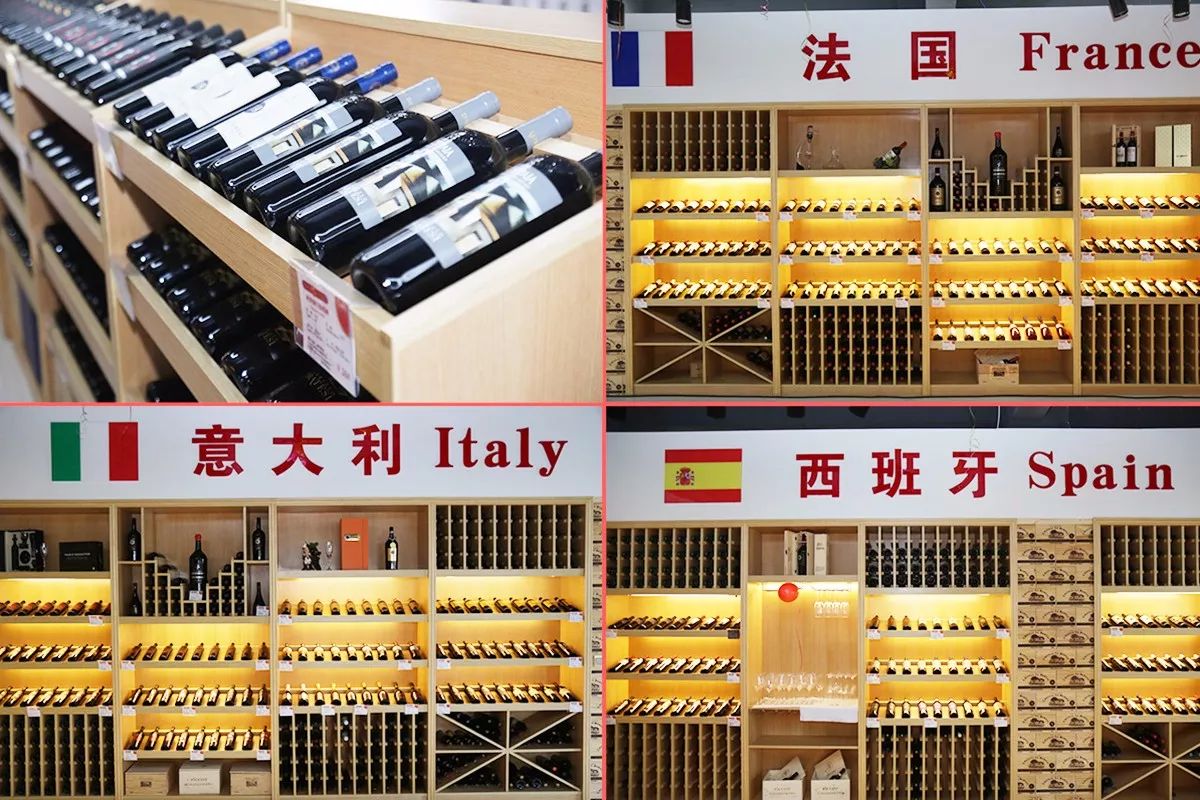 100%原瓶原裝的(de)進口葡萄酒擺滿展架